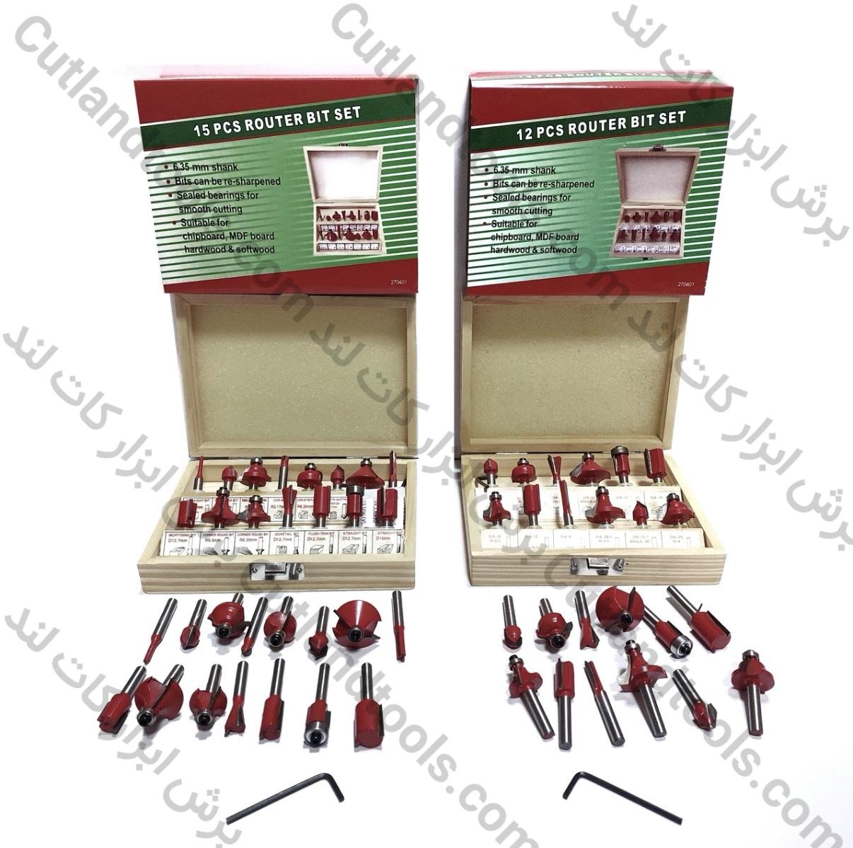 ست تیغ اورفرز نجاری شفت 6.35 میلی‌متر (مدل 12 و 15 پارچه)